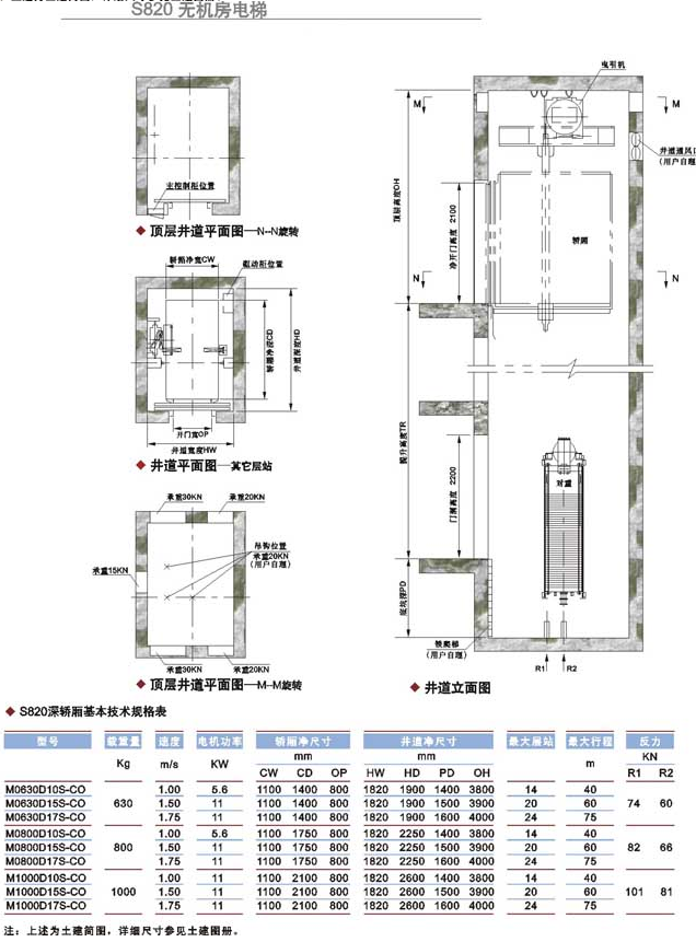 該系列產(chǎn)品采用目前世界上最先進(jìn)的電梯專用控制系統(tǒng)和交流變壓變頻(VVVF)調(diào)速系統(tǒng)。全電腦智能控制,可實(shí)現(xiàn)多微機(jī)、模塊化、網(wǎng)絡(luò)化控制;多協(xié)議模式通訊方式,使安裝、維保更快速、靈活;VVVF調(diào)速系統(tǒng)配以交流異步電動機(jī),根據(jù)不同的運(yùn)行工況,可按照人體工程學(xué)預(yù)設(shè)最佳速度曲線,精確調(diào)整電動機(jī)轉(zhuǎn)速,使電梯啟動、運(yùn)行、停止時的速度變化在人們不知不覺中得以實(shí)現(xiàn),使乘客倍感舒適。此外,VVVF調(diào)速系統(tǒng)還能提供良好的平層準(zhǔn)確度,提高運(yùn)行效率,減少了系統(tǒng)能耗。無機(jī)房電梯與有機(jī)房電梯相比,節(jié)約建筑空間,降低建筑成本,使建筑物造型更加美觀;具有更高的井道空間利用率,運(yùn)行更穩(wěn)定。小機(jī)房電梯的機(jī)房面積同井道面積相同,同樣可以大量節(jié)約建筑空間。它們均采用無齒輪曳引機(jī),傳動效率高,運(yùn)行耗能小,與普通曳引機(jī)相比可節(jié)省30~40%的耗電量,振動小,噪音低,完善的安全保護(hù)確保電梯運(yùn)行安全可靠。S820/S830系列電梯最大提升高度為75米,最大的停站數(shù)為24層,速度為1.0~1.75米/秒,可廣泛應(yīng)用于中、低層提升高度的住宅樓及商務(wù)樓。
